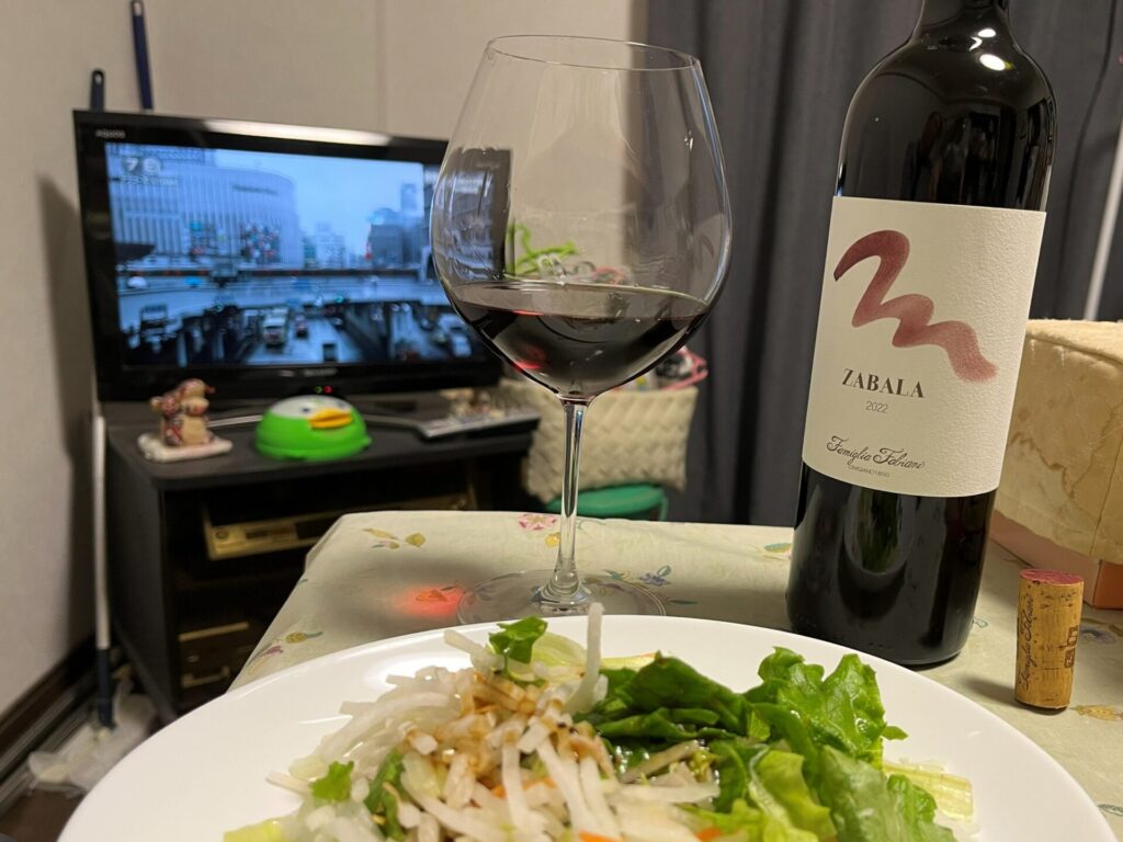 Ah, delicious. It has a berry flavor with a nice hint of acidity. There’s hardly any astringency, so it’s easy to drink like juice. The alcohol content is 14.5%, but it doesn’t feel strong. It’s a very well-balanced taste.