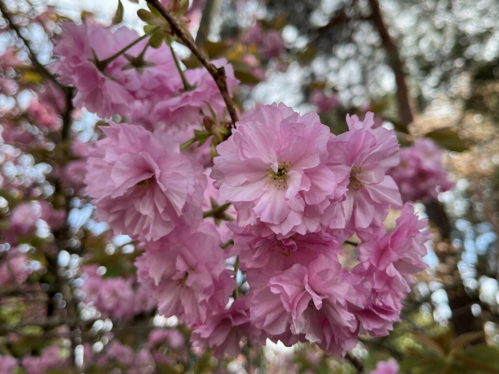 In their place, the double-flowered cherry blossoms are in full bloom.