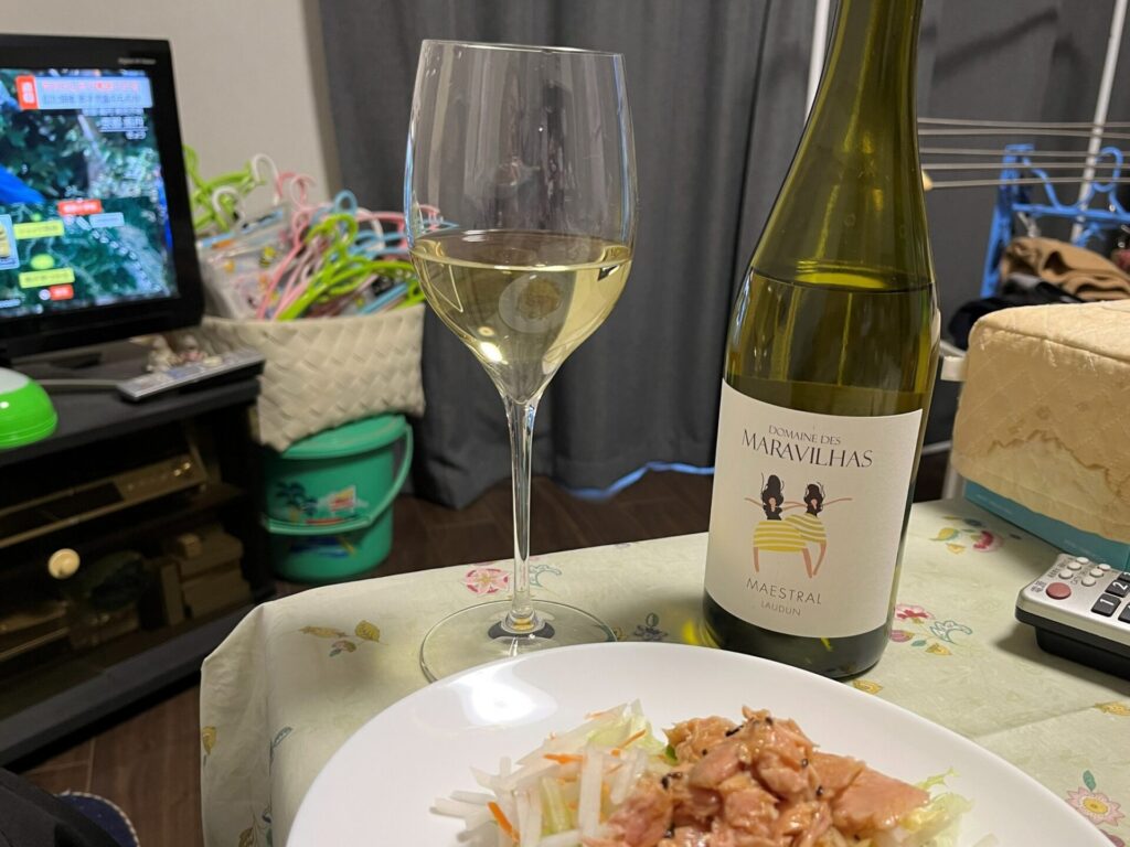 It’s delicious. It has a peach-like aroma, but with a slight acidity, giving it a fresh feel. There’s also a slight mineral taste, making it a flavor that keeps me interested. It’s slightly chilled, making it crisp and very tasty. I don’t usually drink white wine, but this is delicious.