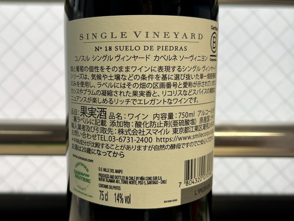 コノスル・シングルヴィンヤード・No.18 カベルネ・ソーヴィニョン2021