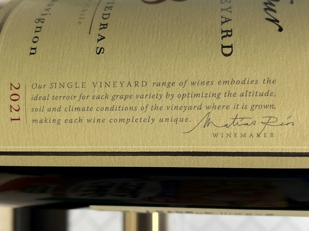 今回、このSINGLE VINEYARDは初めて飲むので楽しみです。