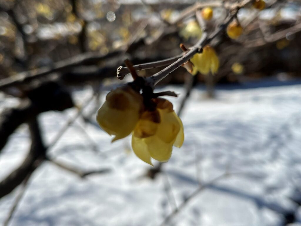 雪の中を蝋梅が咲いていました。あとひと月半ほどで桜も咲く予定です。