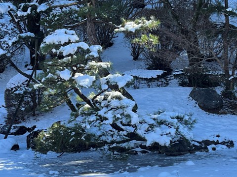 Wintersweets were blooming in the snow. The cherry blossoms are due to bloom in about a month and a half.