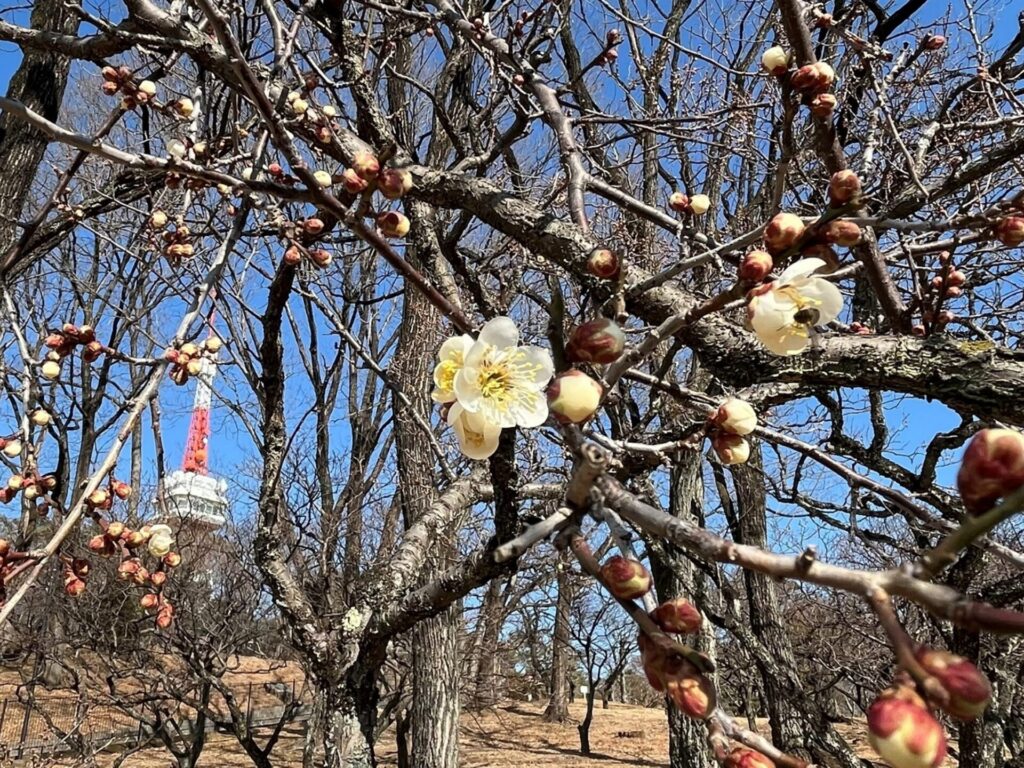 先週は、雪も降ってメッチャ寒かったんですが、今日はメッチャ暖かいです。散歩道にある梅も開花し始めました。