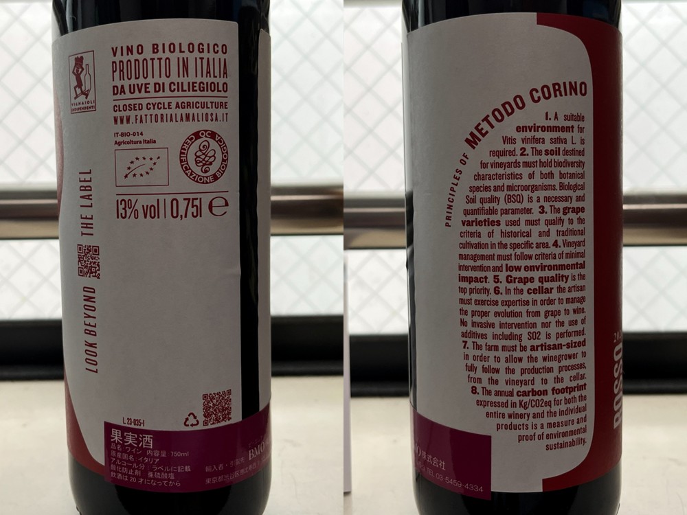 イタリア・トスカーナのワイナリーのナチュラルワインです。チリエジョーロ90%、サンジョベーゼ10%でブレンドしたワインだそうです。